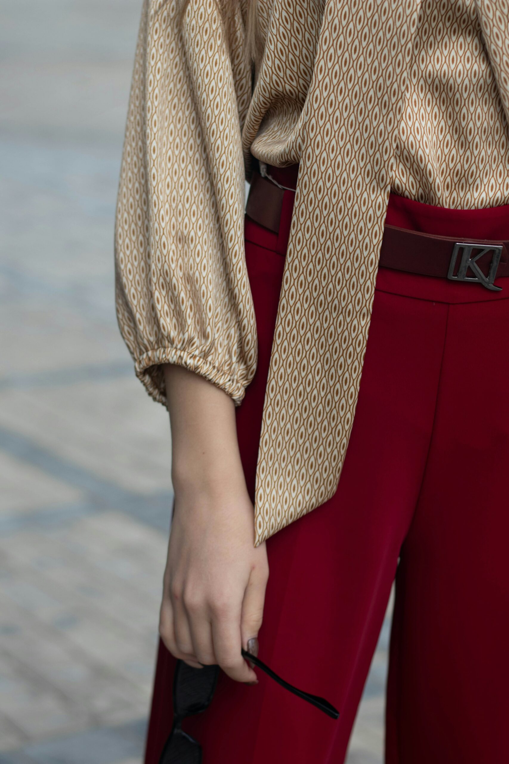 Pantalon 1 est un vêtement haut de gamme. Disponible en rouge/gris.